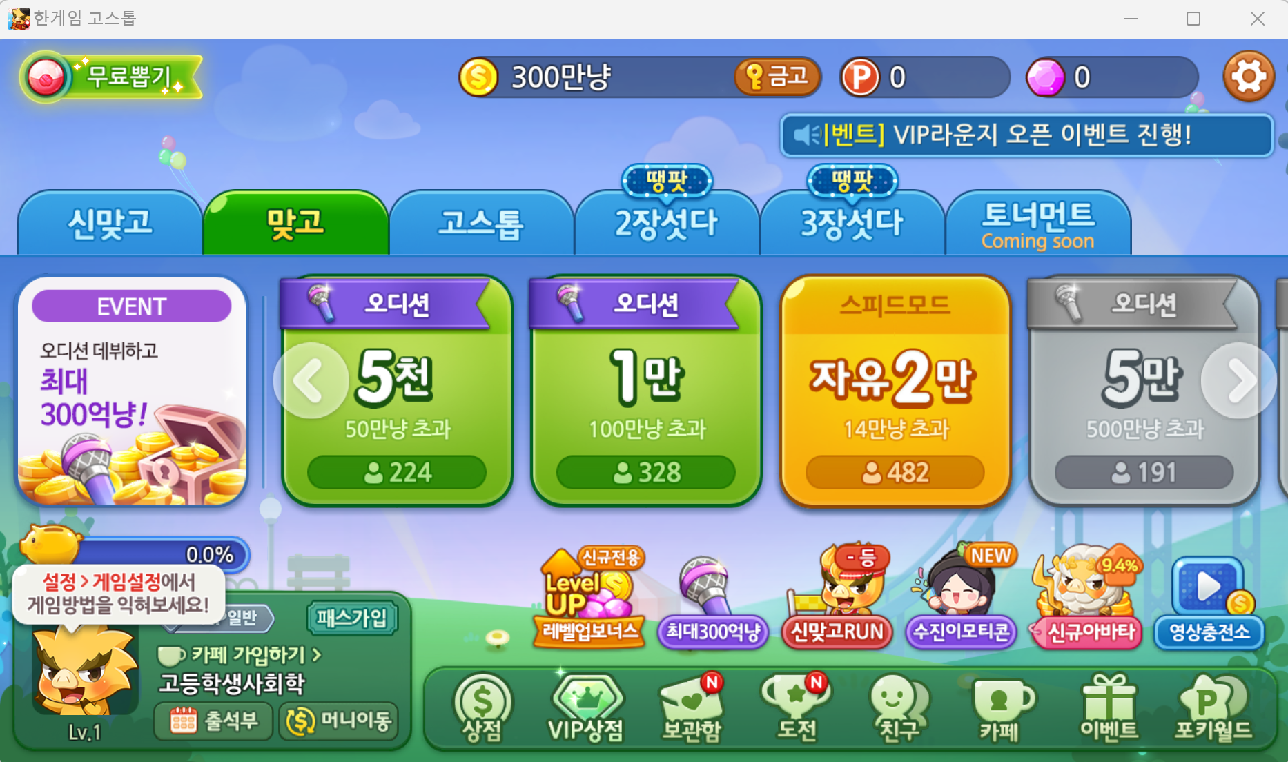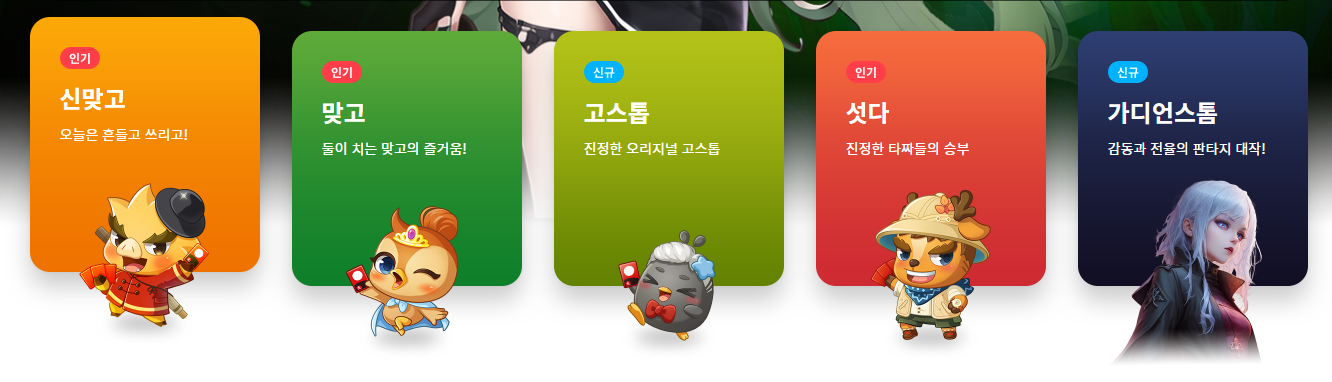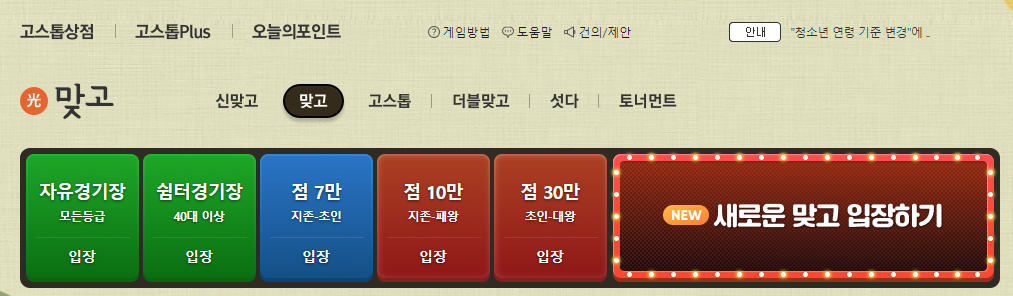 신맞고 맞고 고스톱 섯다 중 원하시는 메뉴를 고르시면 됩니다